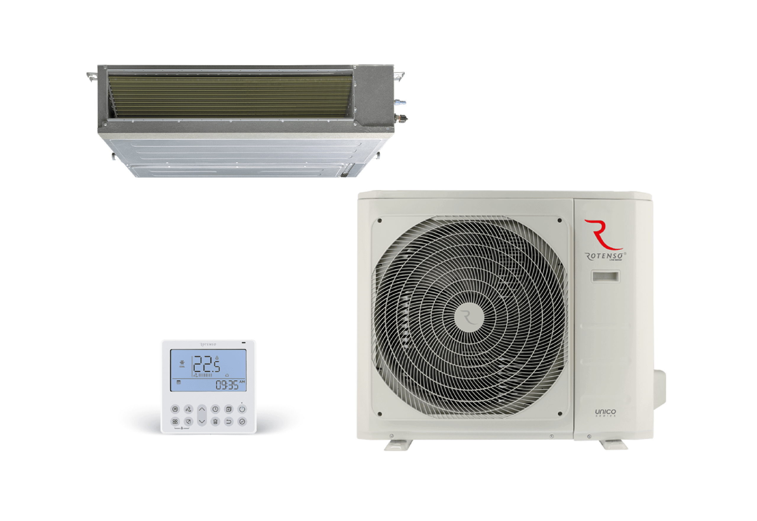Kanálová klimatizácia Rotenso NEVO je dostupná v ôsmich výkonoch (od 3,5 kW do 15,2 kW) a v triede chladenia A++. Má statický tlak až 160 Pa. Pozlátené lamely použité v Nevo zlepšujú účinnosť zariadenia a účinne chránia klimatizáciu pred koróziou. Klimatizácie sa vyznačujú širokými možnosťami ovládania. Dostupné príslušenstvo zahŕňa: centrálne ovládače s týždenným programovaním, striedavou prevádzkou a bezdrôtové diaľkové ovládanie. Model NEVO využíva moderný nástenný ovládač SAVA X so zabudovaným Wi-Fi modemom, ktorý umožňuje pohodlnú správu klimatizácie odkiaľkoľvek. Jednotku je možné namontovať vertikálne aj horizontálne (táto funkcia je dostupná pre modely s výkonom od 5,3 kW).